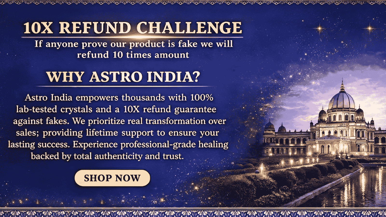 Transparency, responsibility, and respect guide everything we do, which is why we clearly communicate what our products are meant to support—and what they are not—without fear-based selling, exaggerated claims, or misleading promises, focusing only on simplicity, honesty, and purpose; Astro India stands for trust over transactions and long-term value over quick sales, with a vision to build a brand that represents clarity, confidence, and inner strength, not just in India but globally.