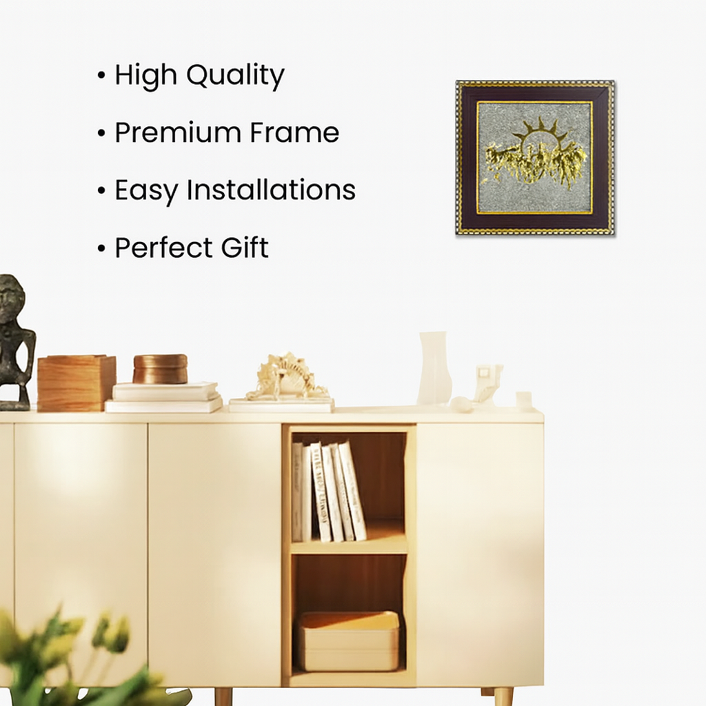 For best results, place the frame in the north or east direction of your home or workplace, as these areas support career growth and positive movement. Keeping it on your office desk, study table, showroom, or Vastu money corner helps activate wealth vibrations and encourages daily motivation. Ensure the horses face inward toward the home or workspace, symbolizing success entering your life. Clean the frame regularly with a dry cloth to maintain energetic clarity.