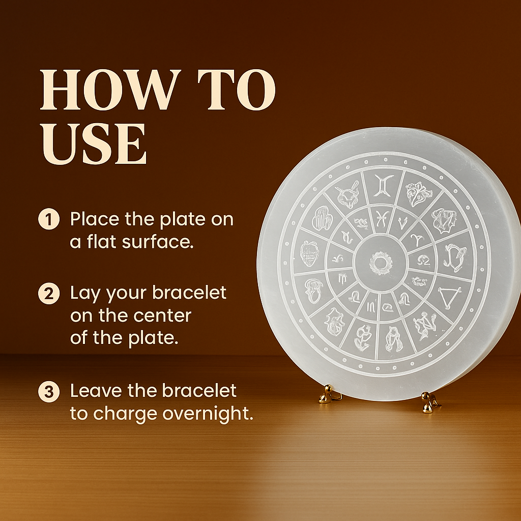Place your crystals or jewellery directly on the selenite plate for a few hours (or overnight) to allow full energetic cleansing. Keep the plate in your bedroom, meditation corner, office desk, or pooja space to maintain continuous positive energy.