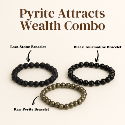 The Pyrite Attracts Wealth Combo is designed to support financial growth, protection, and energetic balance. This combo brings together carefully selected natural crystals traditionally associated with abundance, grounding, and protection. Each bracelet is made using authentic stones, professionally lab-tested, and energetically charged to ensure quality and effectiveness.