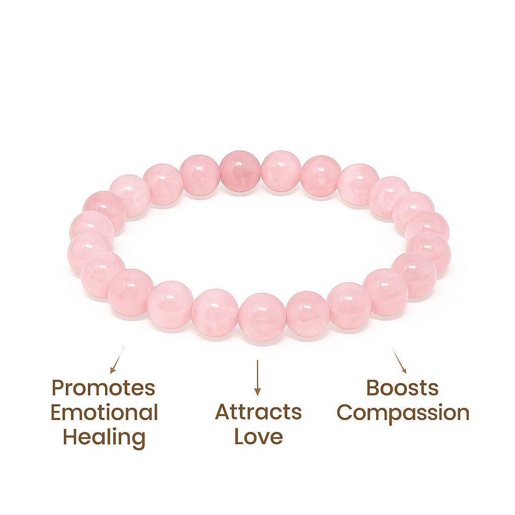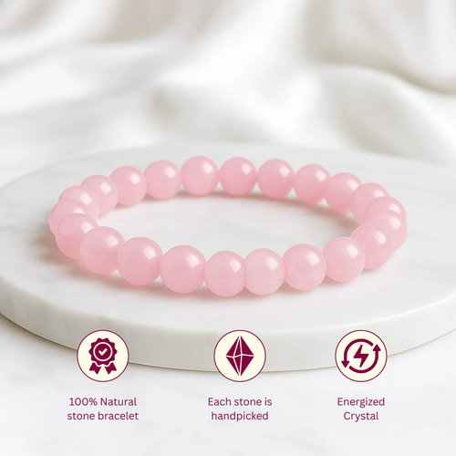 A natural Rose Quartz Bracelet by Astroindia designed to attract love, heal emotions, and promote inner peace.